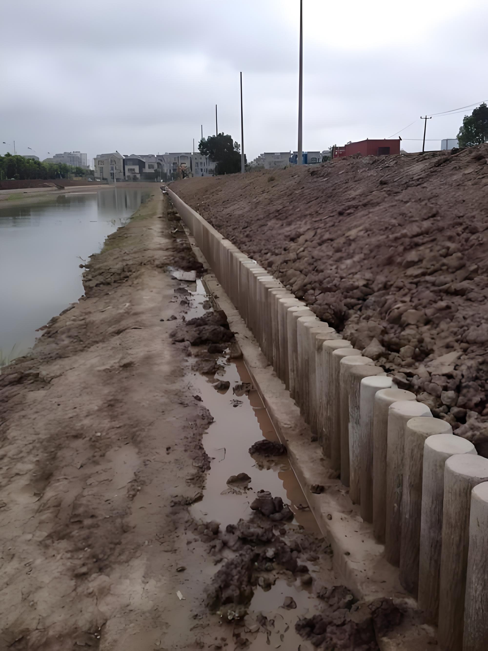 - 河道護岸:打樁后在樁之間填沙袋(防水流沖刷樁體);