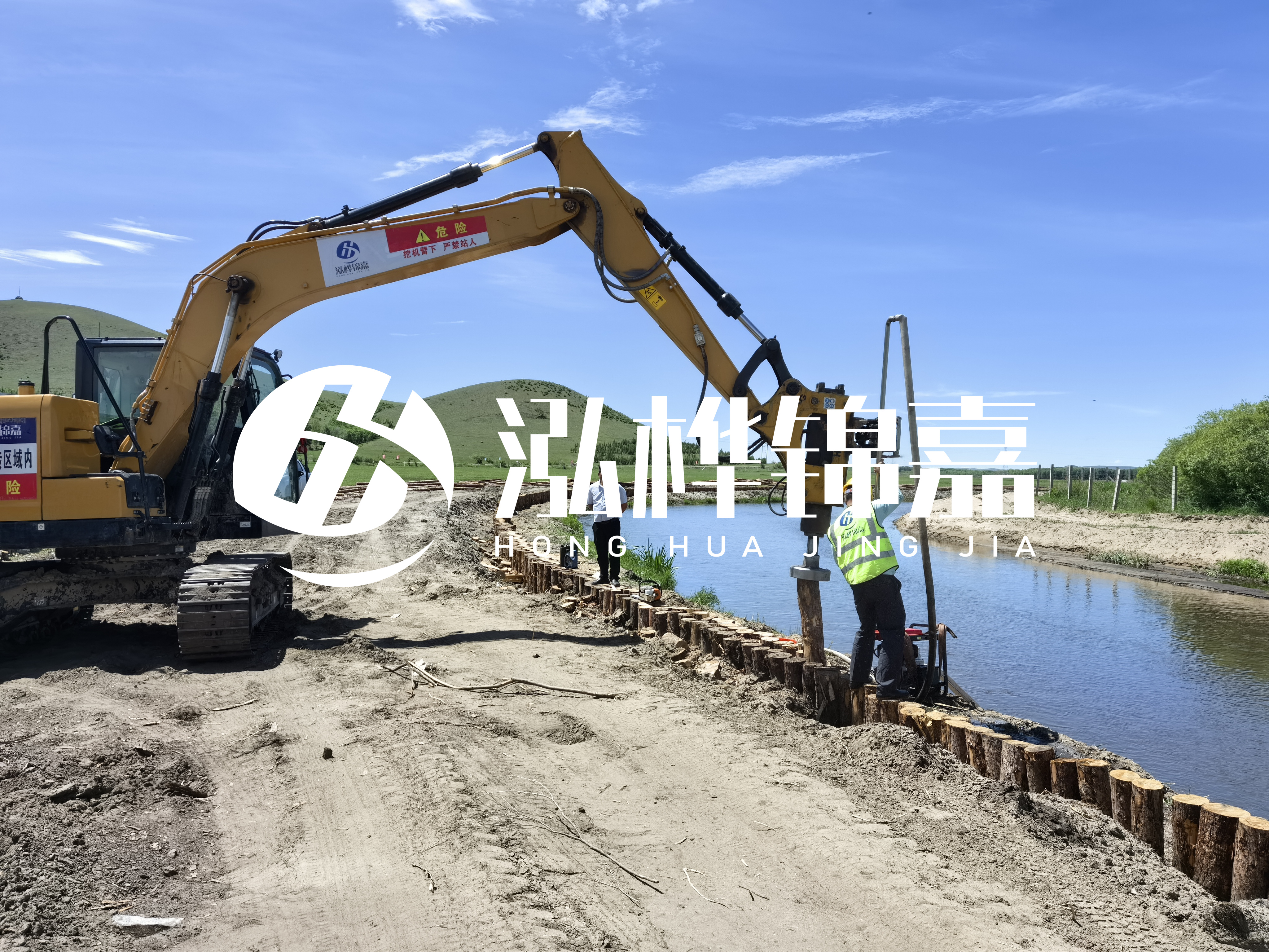 - 挖掘機(jī)配備的液壓打樁機(jī):這是目前最常見(jiàn)的打樁方式之一。挖掘機(jī)本身具有較強(qiáng)的挖掘和搬運(yùn)能力,配備液壓打樁機(jī)后,可以方便地將松木樁準(zhǔn)確地打入指定位置。