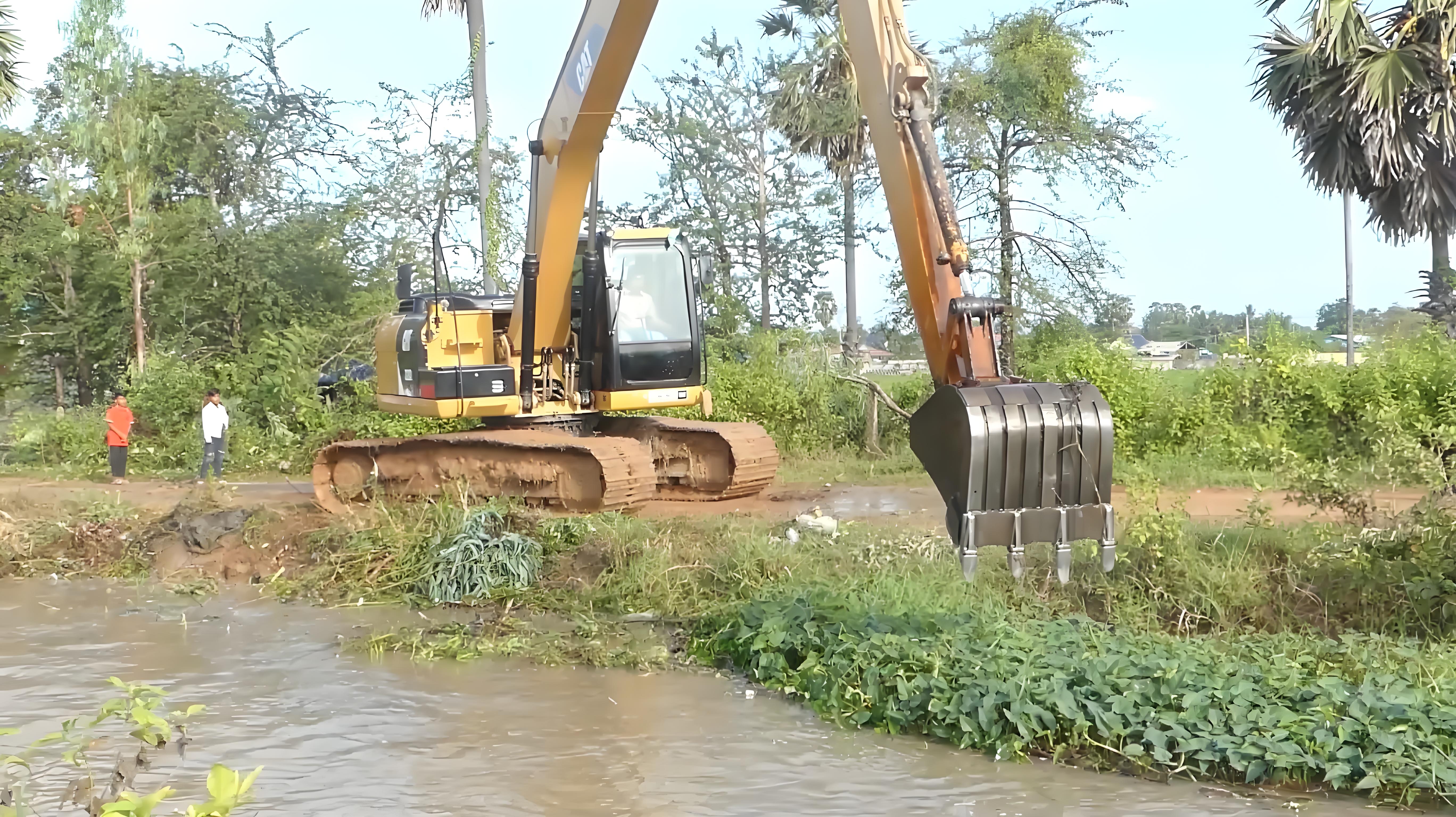 - 水草的密度和纏繞程度:如果是零星分布的水草,挖機作業(yè)基本不受影響;但要是水草長成了 “水下森林”,根莖纏繞成網(wǎng)狀,挖斗很容易被纏住,每挖幾斗就得停下來清理,效率會大打折扣。這種情況下,可能需要先用割草機把水面和淺層的水草割斷,再用挖機清淤。